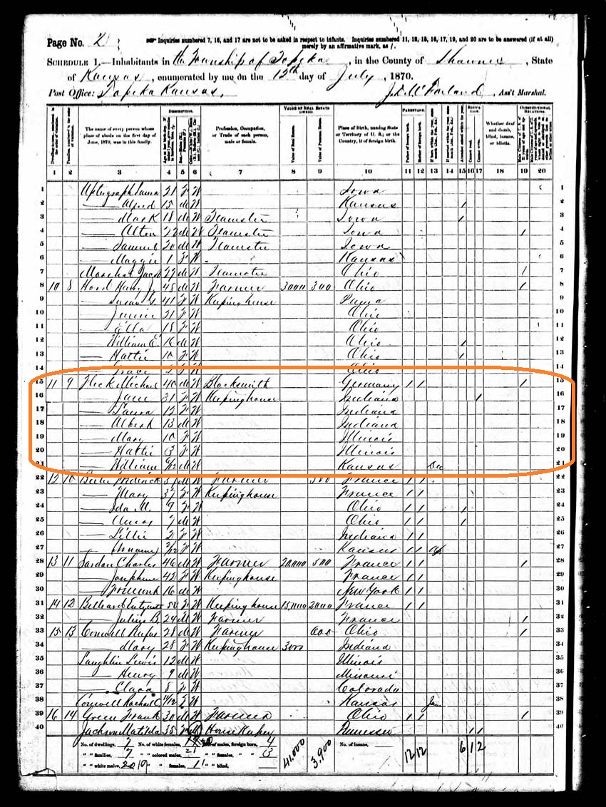 Probably Michael Fleck, listed in the 1870 census (line 15) as a blacksmith.