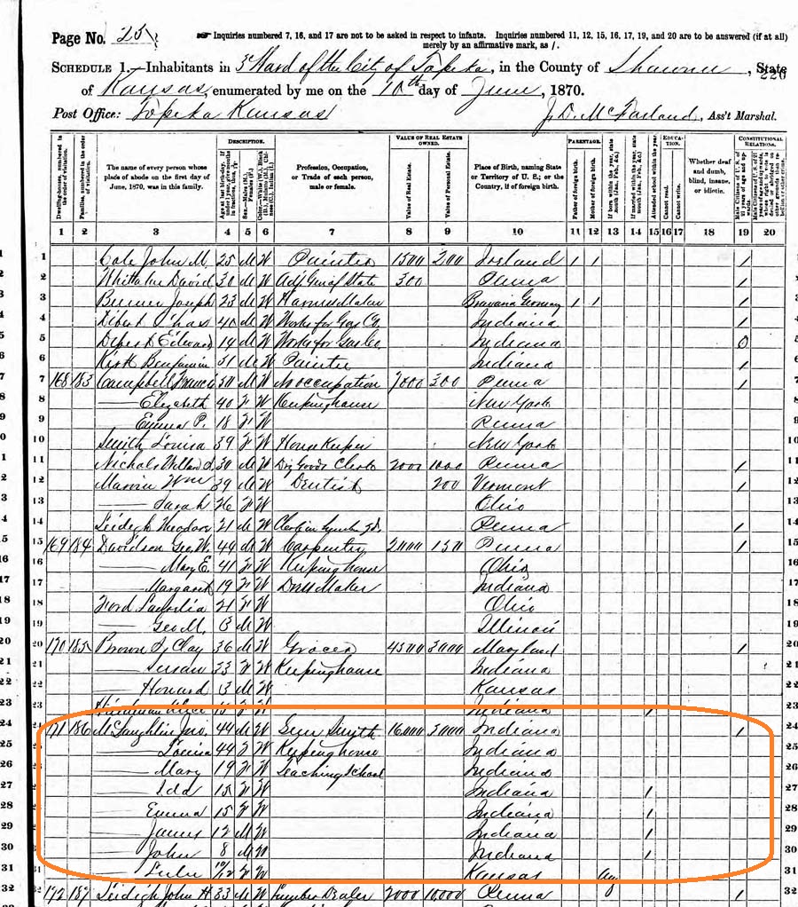 John McLaughlin, listed in the 1870 federal census as a gunsmith in Topeka.