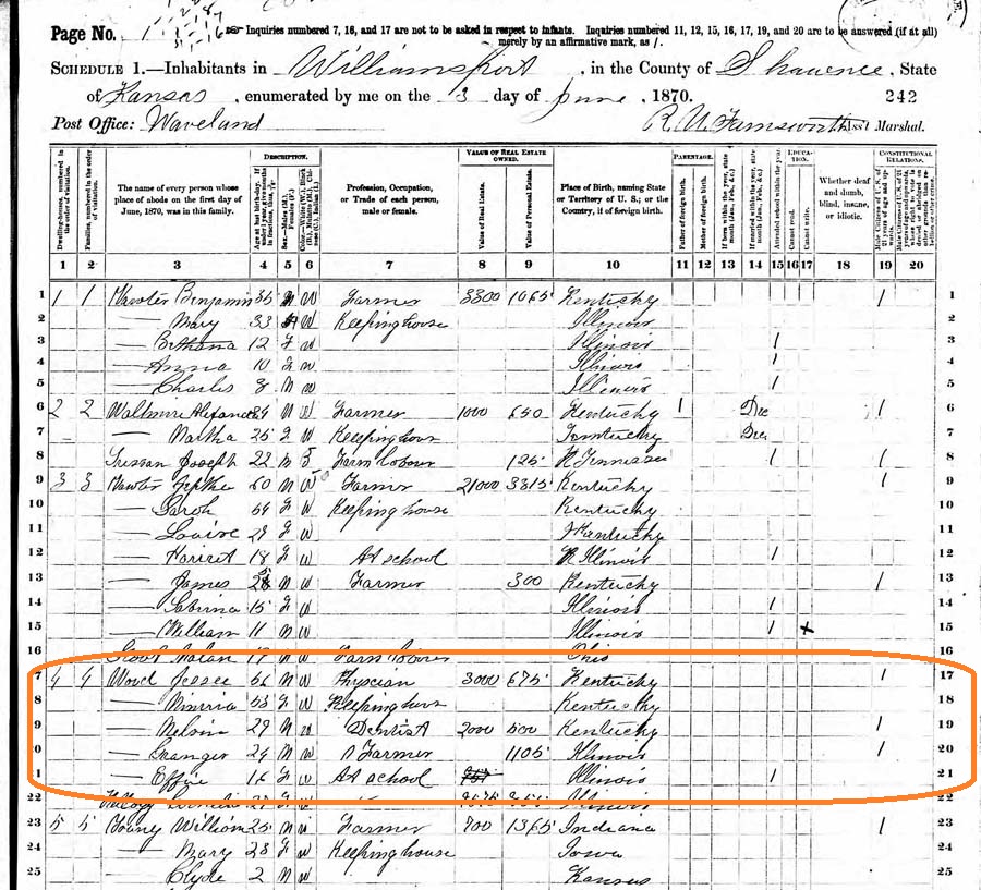 Most likely Jessee Wood, a physician who appears in the 1870 census (line 17) in Williamsport township.