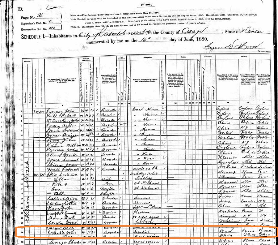 Probably John Gamble, a dentist living in a boarding house in Osage county in 1880 (line 26).