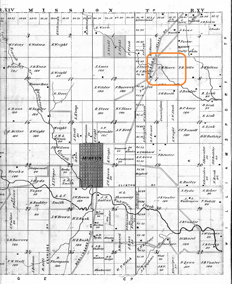 Probably S.H. Moore, shown on the 1873 Beers Atlas map as having a farm on Six Mile Creek, in township 7. His farm was close to Susan Stahl's acreage.